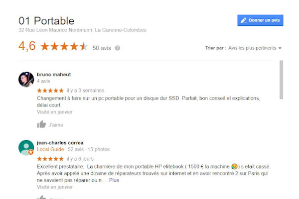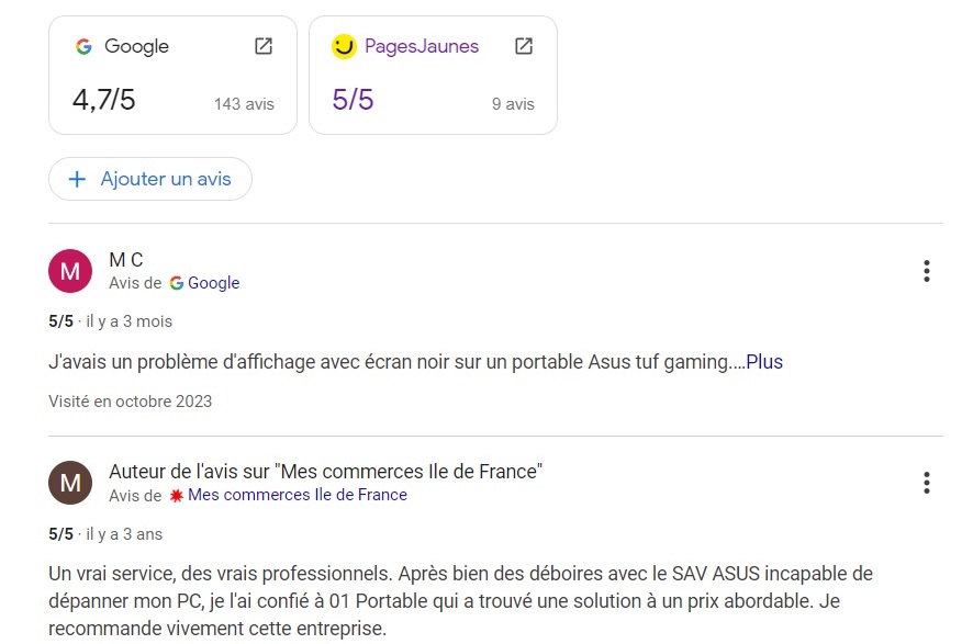 4,6 étoiles sur Google, 5 étoiles sur Pages Jaunes , 5 étoiles sur Facebook